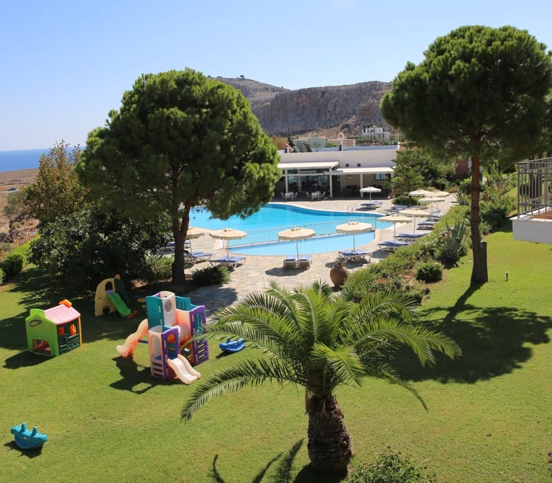 Ville di Lindos has 30 studios and 5 apartments. The apartments are built in an exceptionally well preserved garden that surrounds the pool. The accommodation is offered on breakfast. The view from rooms combines the multi-colored garden with the deep blue color of the sea as a background giving an enchanting view to the guests.