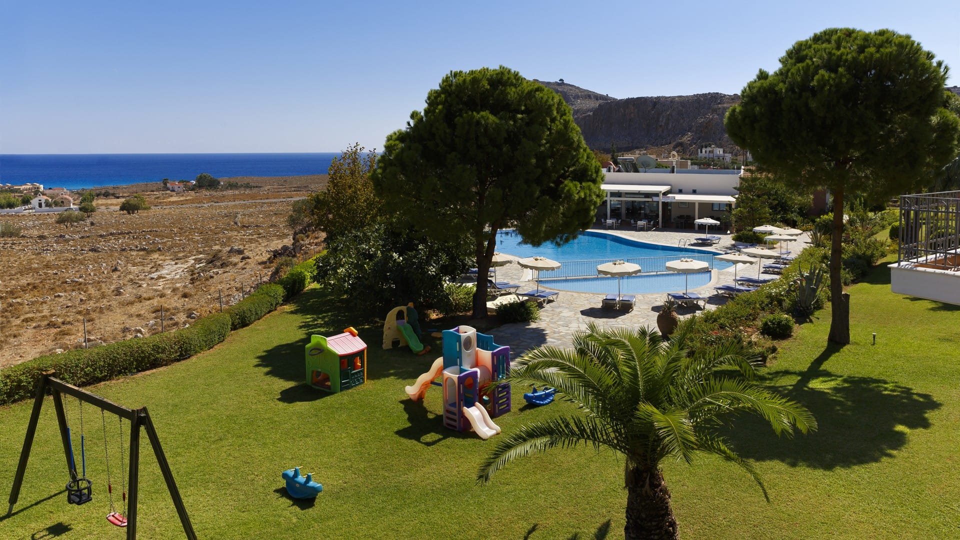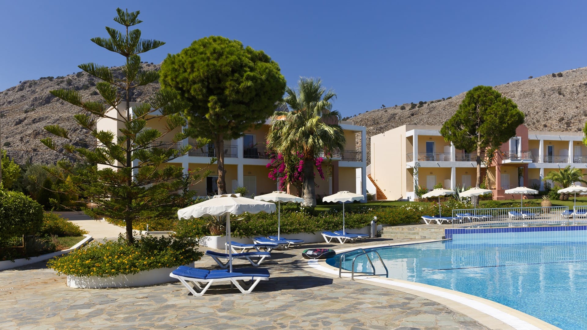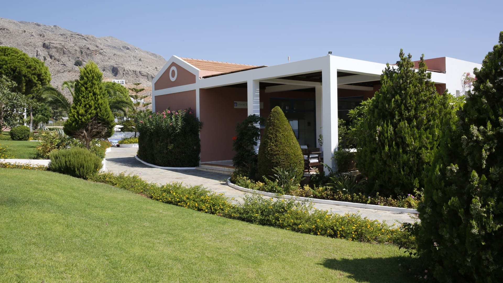 Ville di Lindos has a satellite TV area, snack bar, bar and an excellent pool in the gardens where you can find sun beds and sun umbrellas.